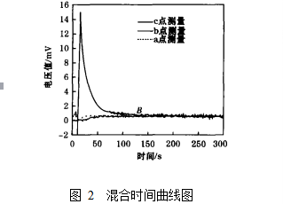 時, 作為達(dá)到攪拌要求時的混合時間。圖中的 AB 段就是筆者測量的混合時間。