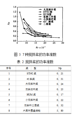 STNC槳, **大的是六直葉圓盤渦輪。在評價攪拌器的混合性能時, 常常采用混合效率數(shù) C e 來比較混合效率的高低