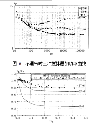 圖 7是在充氣狀態(tài)時(shí)三種攪拌器的功率變化曲