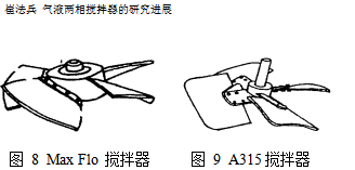 特別適合于氣液傳質(zhì)過(guò)程 ,在直徑大于 1 m 的實(shí)驗(yàn)裝置中 ,同樣的輸入功率下 , A315槳的持氣量比 Rush-ton渦輪高 80% ,氣體分散量提高 4倍 ,同時(shí)產(chǎn)量提高