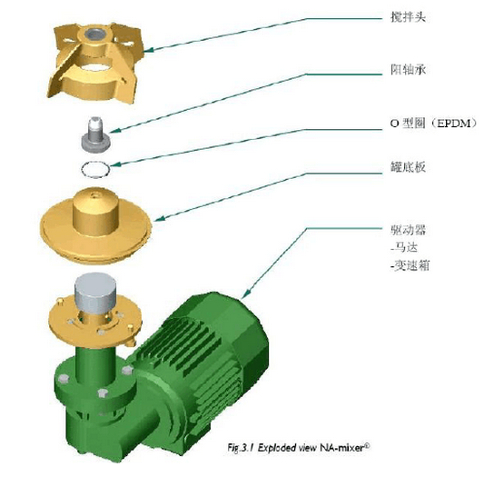 仔細(xì)定位攪拌頭的位置,并將其對準(zhǔn)放置在罐底板上。不能將攪拌頭落入陽軸承上;因?yàn)檩S承表面非常脆弱,并且極易受損。用手旋轉(zhuǎn)攪拌頭,確保其旋轉(zhuǎn)不產(chǎn)生任何刮擦聲。