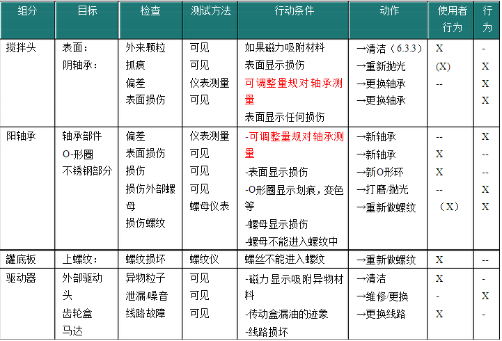 以下檢查應(yīng)該作為日常維護(hù)進(jìn)行,(每6個(gè)月)保證沒有攪拌系統(tǒng)操作問題。有腐蝕性的或高固體含量的產(chǎn)品可能更快地磨壞軸承。